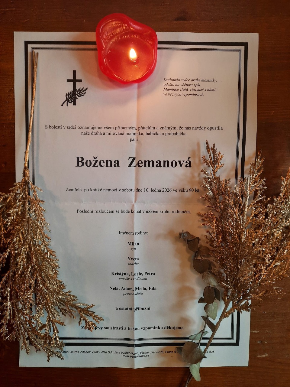Chtěli bychom se podělit o vzpomínku na paní Boženu Zemanovou, která nás bohužel navždy opustila začátkem tohoto roku.